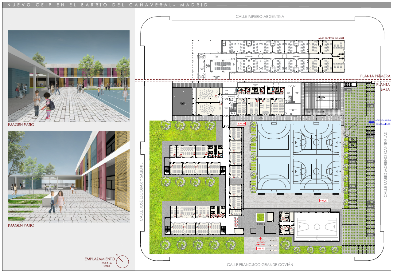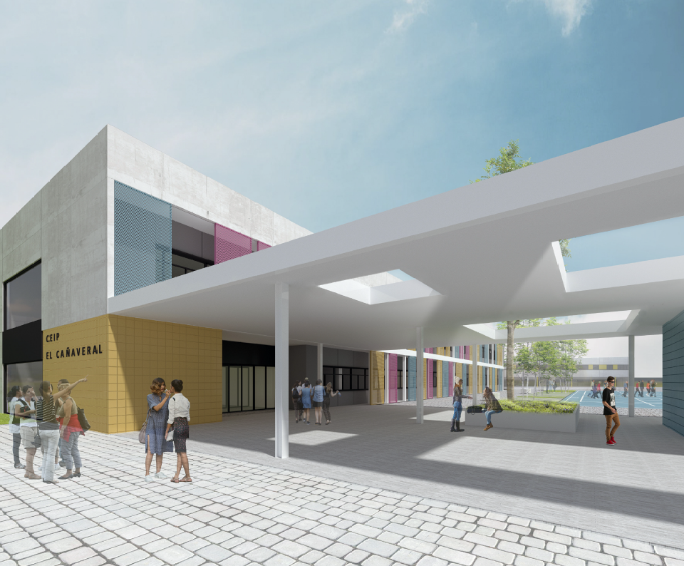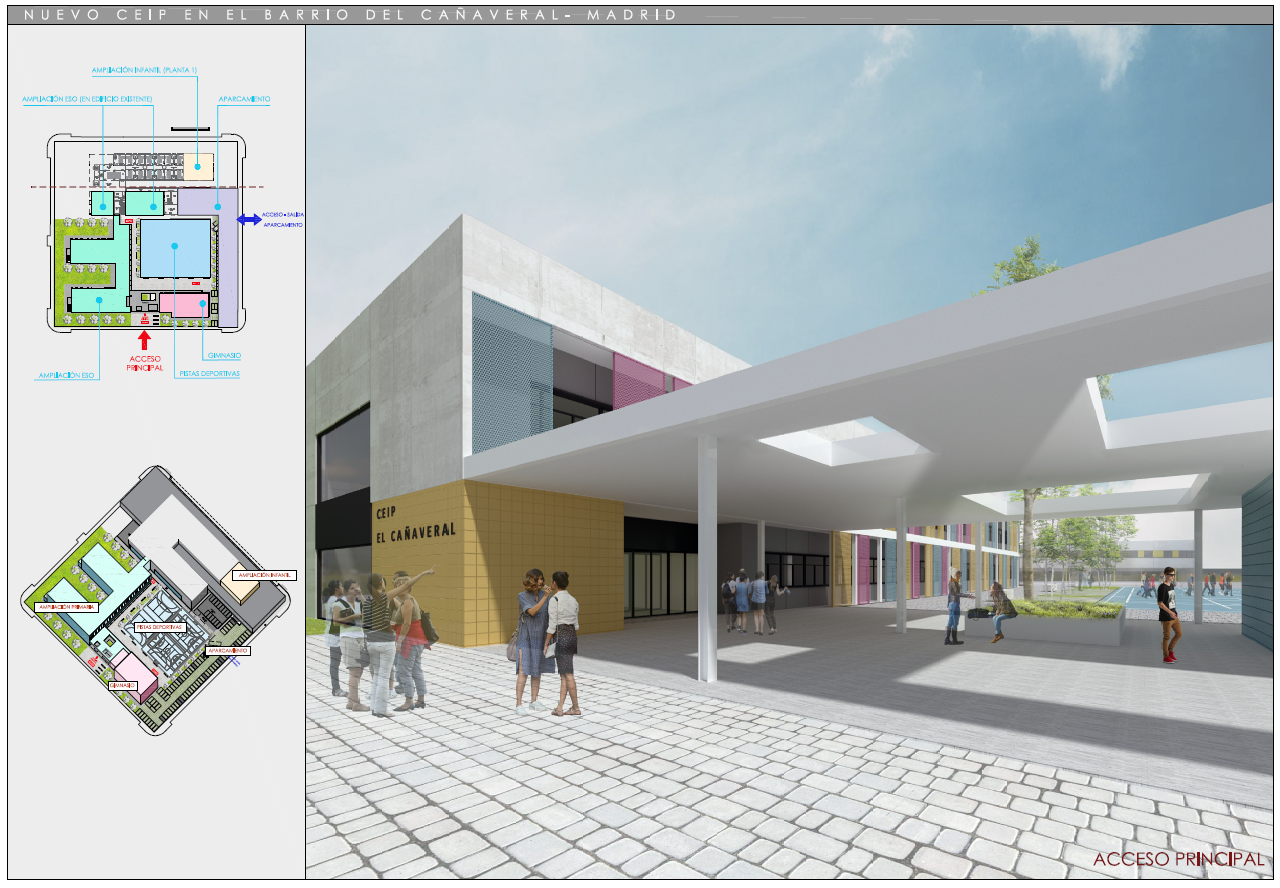 C.E.I.P. Barrio del Cañaveral de Madrid. 6 aulas infantil, 36 aulas primaria, 6 aulas desdoble, 6 aulas apoyo, 4 específicas, gimnasio y pistas deportivas